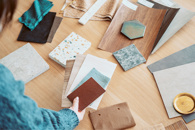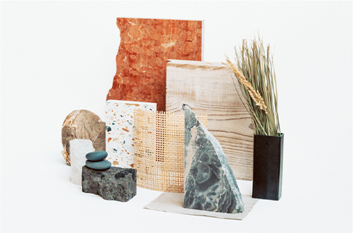 素材の色味に関して、素材そのままを再現するだけでなく、今のインテリアシーンやトレンドに合わせてつくりこんでいきます。