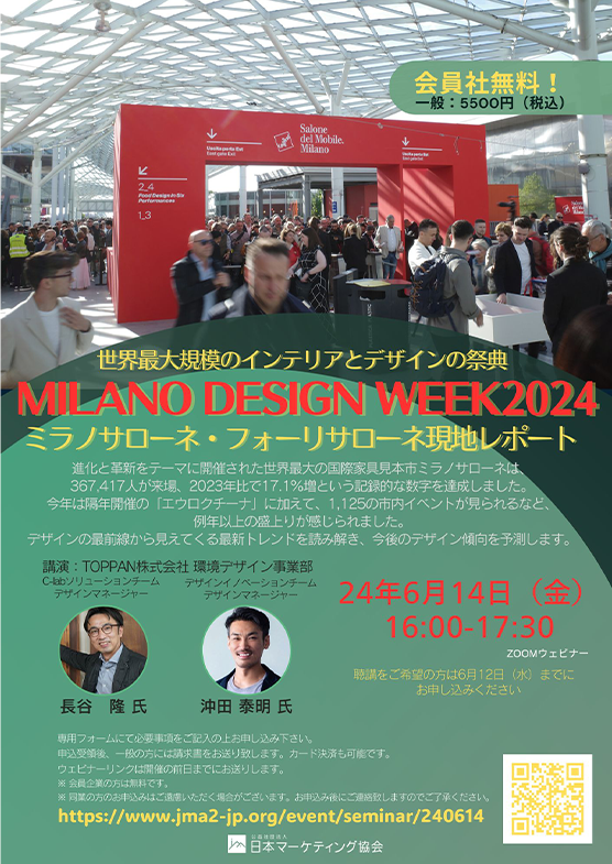 公益社団法人日本マーケティング協会様にて「Milano Design Week 2024に見るデザインの最前線〜ミラノサローネ・フォーリサローネ現地レポート」を実施