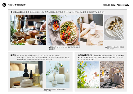 リサーチ結果×C-lab.が蓄積してきた独自の分析を掛け合わせ、具体的なペルソナを設計し新たな価値を創出します。