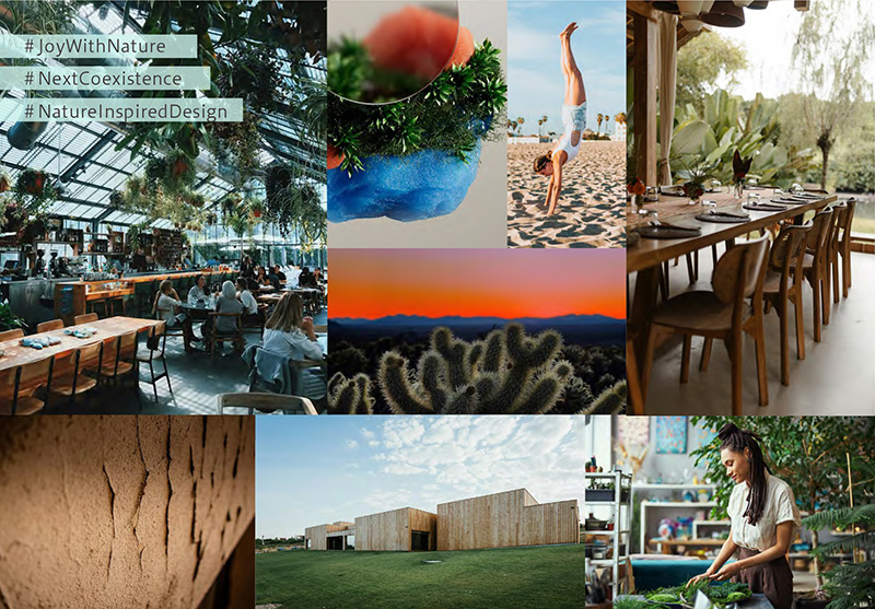 これまでにはなかった自然との新しい接点が増え、私たちはそれぞれの体験を通じて自然環境への愛着を深めています。愛着は責任感を育て、サステナビリティへの意識はもはや現代のスタンダードともいえます。激化する気候変動に適合し、持続可能な未来を目指すため、自然への向き合い方は日々変化を遂げています。その一方で、自然から得られる喜びは不変であり、何物にも代え難いものです。どれだけ時代が進んでも、自然からのインスピレーションに根付いたデザインは、常に人々に深い心地よさをもたらしてくれます。