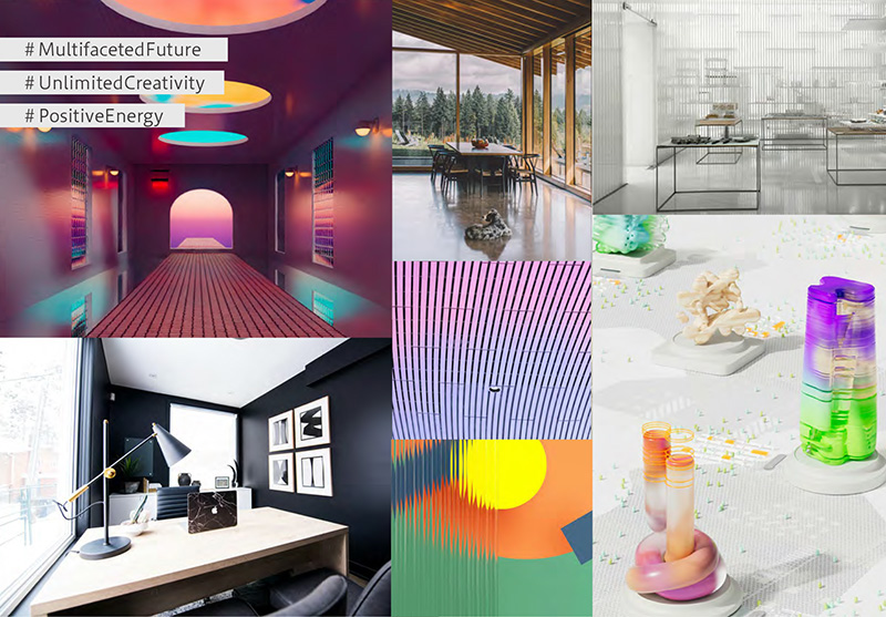 このGrand Design Conceptのもと、「時間」「自然」「デジタル」という3つライフスタイルで重要となるキーワードから「Laid-back Futures」「Live in Harmony」「Optimistic Creation 」のテーマを設定し、より良い未来や暮らしに向けて、C-lab.が考えるデザインコンセプトやテーマカラーの選定を行いました。それぞれ詳しくご紹介します。