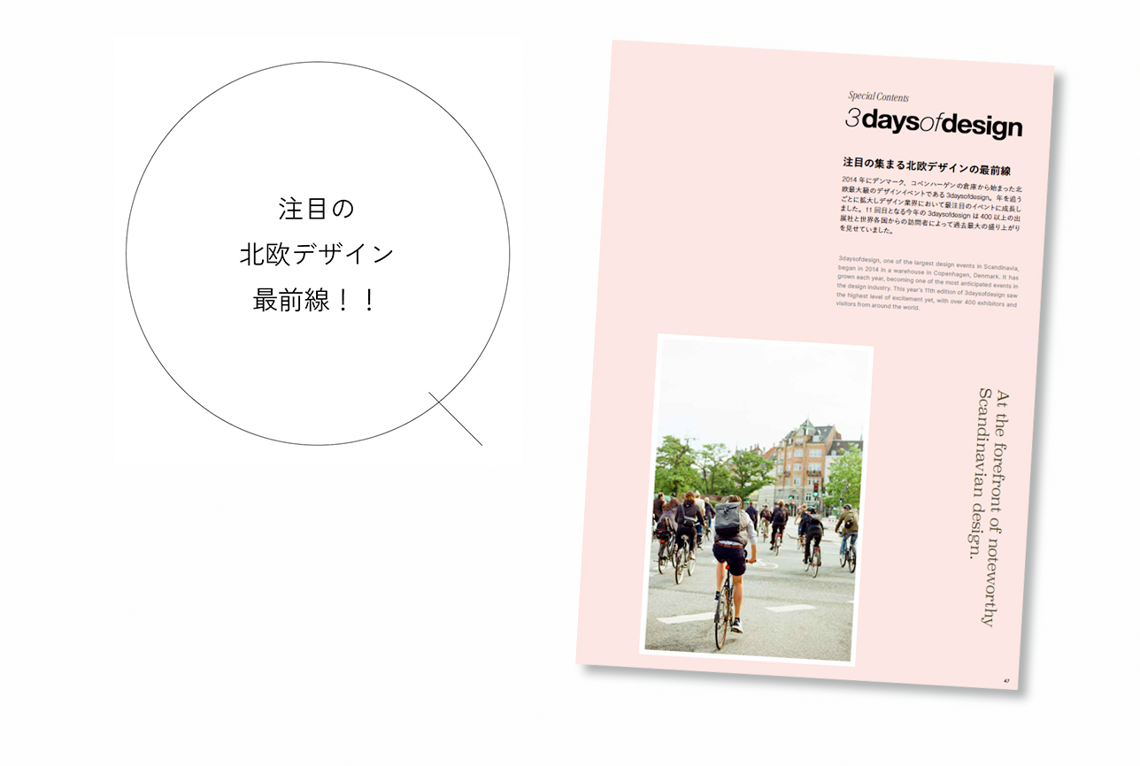 2014年からスタートし、今年で11回目を迎える北欧のデザインイベントである「3daysofdesign」。毎年6月に行われるこのイベントは、昨年の出展者数が290社程度に対し今年は400社以上と、年を追うごとに確実に盛り上がりを見せています。4月に行われる世界最大級のデザインの祭典であるミラノサローネとはまた一味違う、北欧ならではのデザインに触れることのできる貴重なこのイベントをC-lab.視点で紹介しています。