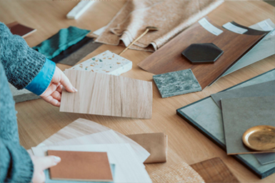 膨大な数の素材に自由に触れて頂き、素材選びをサポートいたします。