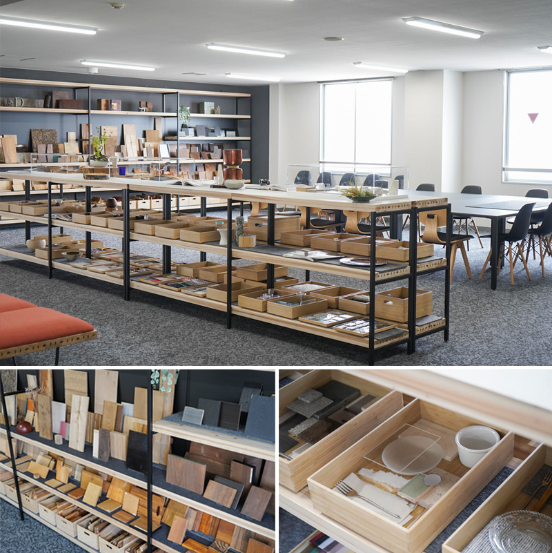 これまで培ってきた膨大な素材情報と空間づくりの知見を活かし、プロジェクトごとにカスタマイズされたワークショップが展開可能です。デザイナーや開発担当者にとって、五感を刺激する素材の遊び場のような空間です。
