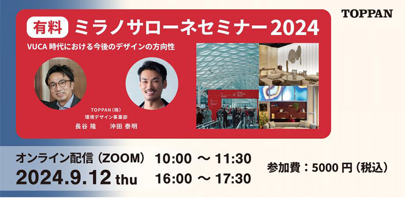 「ミラノサローネ2024セミナー/ VUCA時代における今後のデザイントレンドの方向性」として、ご好評いただいているデザイナーズインタビューを交えながら、デザイントレンド分析から今後の予測まで90分にわたって実施させていただきます。