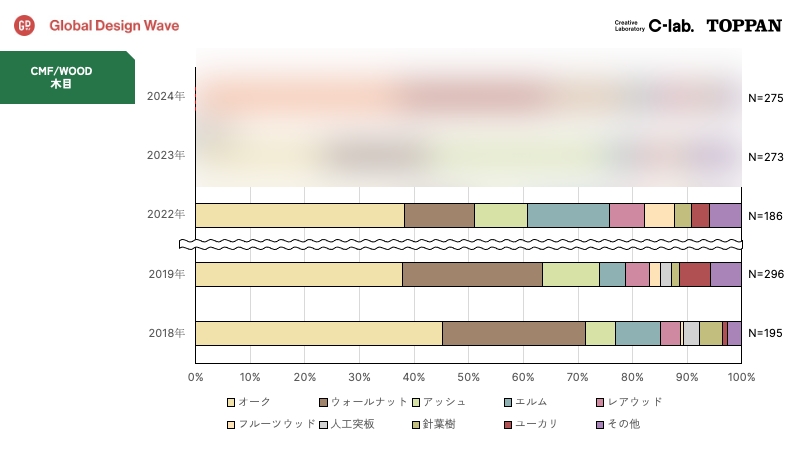 C-lab.の強みであるCMF(カラー、マテリアル、フィニッシュ)の傾向について、データを交えながら解説します。マテリアルミックスがスタンダード化する中、素材の重要性はますます増してきており、C-lab.独自の視点で深掘りしていきます。