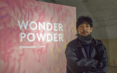 粉末化した素材の動きを島津株式会社の分析機器を用いて科学的に分析する「論理的なアプローチ」と、直感・主観を大切にする「感性的なアプローチ」を実施しています。