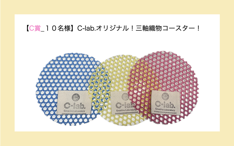 参加方法:下記のアンケートにご回答いただいた方の中から抽選でC-lab.オリジナルのプレゼントをお送りいたします。