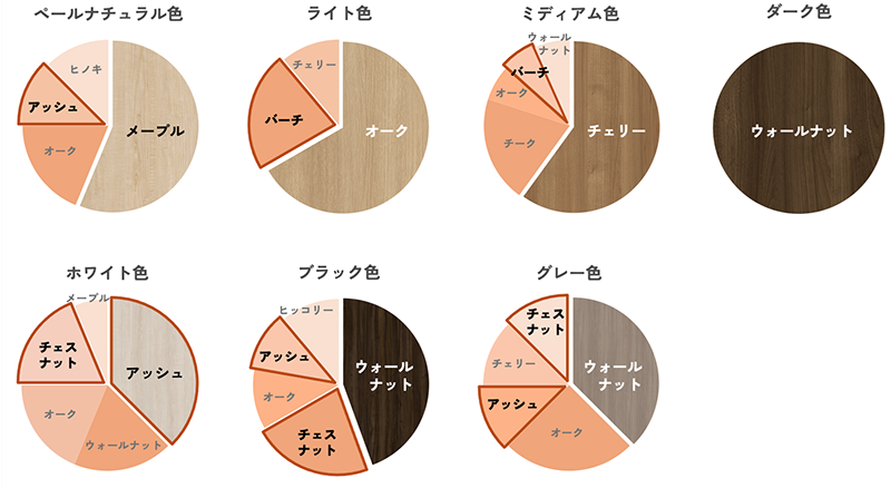 住宅インテリアカラーの色別樹種設定