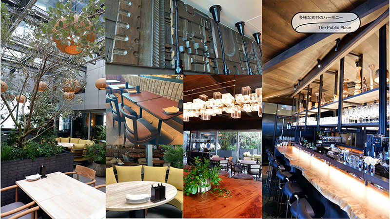 Kさん:そうそう。多彩なマテリアルとカラーを用いながらも、トーンを揃えることで空間全体が調和している点。デザイナーの素材、色、仕上げへのこだわりが伝わってきます。室内は木質素材中心の温かい空間、テラスは植栽を主役とし、石目素材をメインに使用した四季の移ろいを感じさせる落ち着いた構成でした。