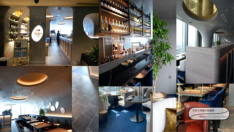 Sさん:「都心の別荘:LUFTBAUM」というコンセプトの通り、都市の喧騒から離れた、静謐な非日常空間が広がっていましたよね。上階へ上がるアプローチから特別感が演出されていました。直通エレベーターエリアは、照明が抑えられ、丸いスポットライトが控えめに灯る空間で、エレベーターを待つ間に、これから始まる体験への期待感が高まるような演出でした。