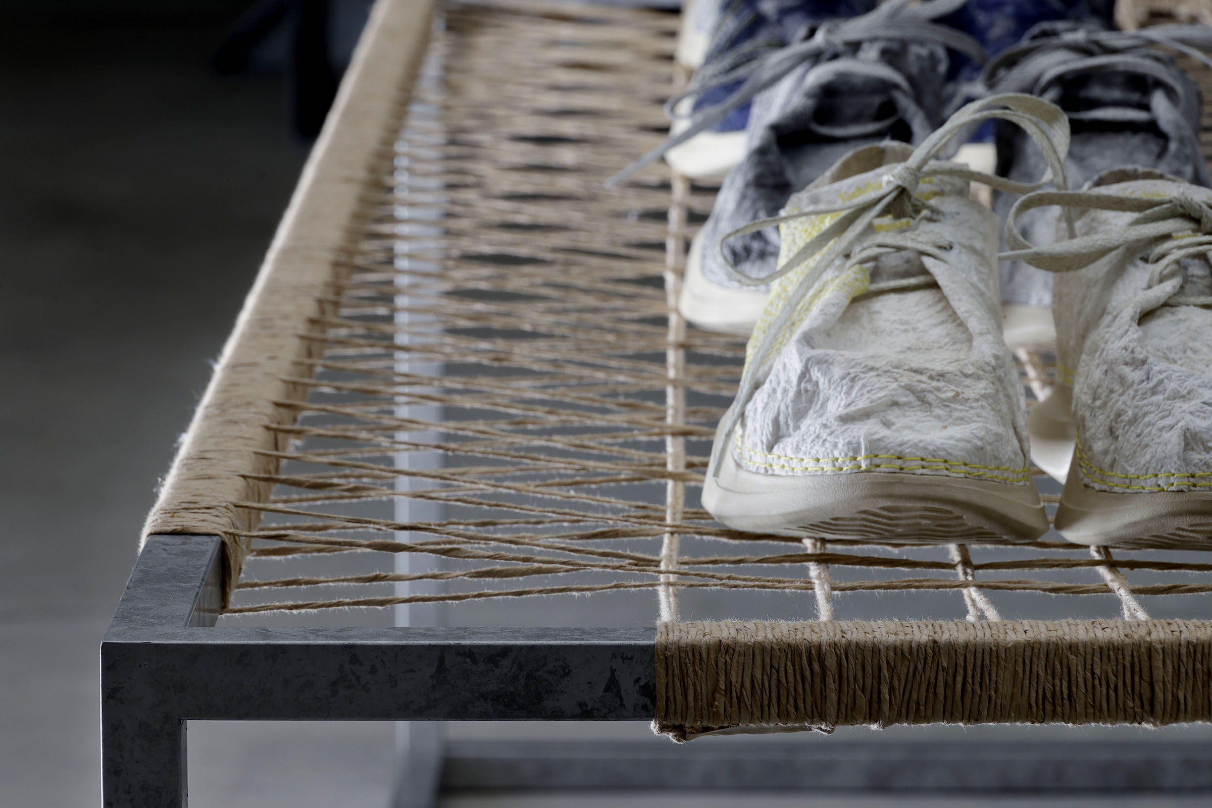 そうですね。このプロジェクトで、最初から達成したかった目標は、どんなに型を変えても作るたびに出てくる端材すべてを和紙が請け負えるようになること。例えば、靴が1足作られるごとに、その端材で出来た靴が和紙との組み合わせで生まれるといったような新たな生産方法を考えていきたいです。大量生産・消費はそう簡単に止められないので、別の角度からエコロジーサイクルを持ち込めるように、今後もプロジェクトでリサーチを進めていきます。