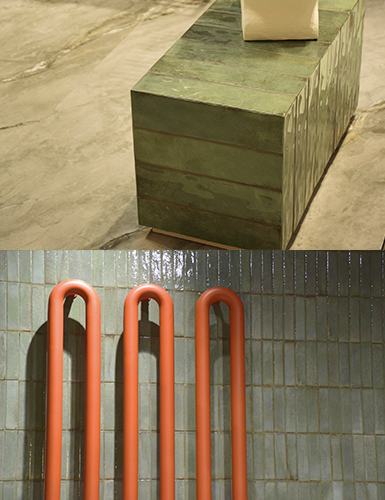 セラミックタイルや水まわり(キッチン、バスルーム等)に関わる最先端のデザインが集う会場で、今後の注目すべきマテリアル情報をCMF(color・material・finish)の観点からお届けします。