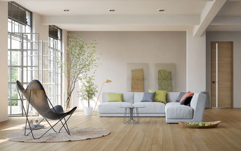 近年のコロナパンデミックや働き方改革による在宅時間の増加により、人々のインテリアへの関心はますます高まっています。最近では、SNS等で高感度のインテリア情報を気軽に手に入れられることもあり、多くの人が思い思いのインテリアコーディネートを楽しむようになりました。そんなインテリアと深い関係にあるのが、ドアや床材の表層に使われる化粧シートです。化粧シートとは、紙やフィルムのシートに木目などのデザインを印刷したもので、高耐久性やバリエーションの多さなどの特徴を活かして多くの内装材に活用されています。