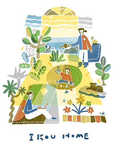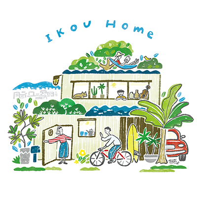 みんなが集まる、ゆったり過ごせる、帰ってくるのが楽しみになる、そんなIKOU Homeをイメージして描きました。