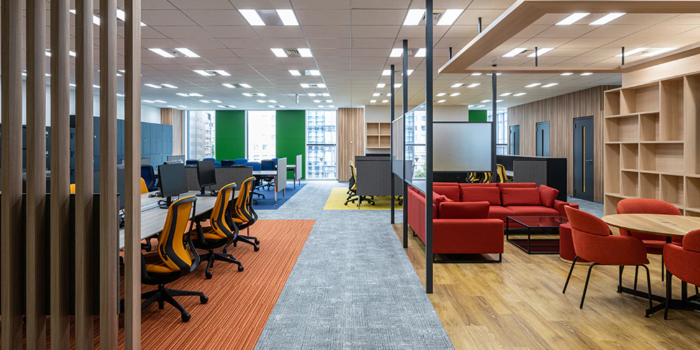 ここで、オフィス内装工事のデザイン事例を7社紹介します。自社の内装工事で取り入れられそうな部分があれば、ぜひ参考にしてください。