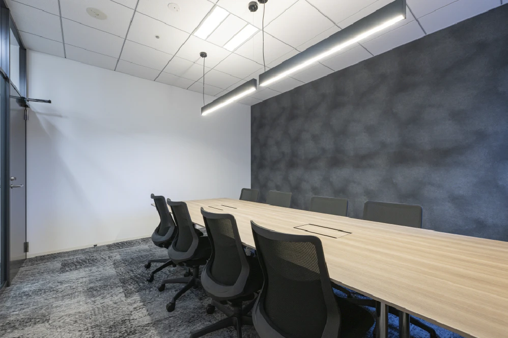 また、仕切りを設けた集中エリアやダウンライトを採用した落ち着いた雰囲気のミーティングルームなど、メリハリのある働き方を実現できるエリア設計となっています。