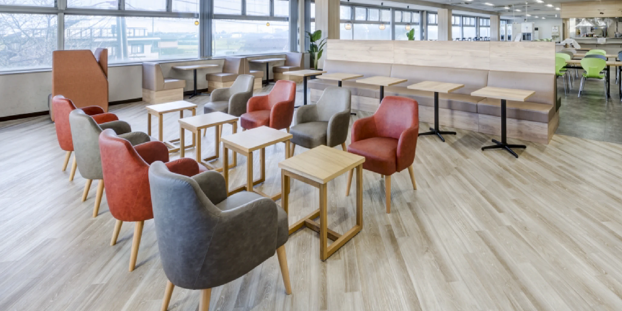 また、個人やグループで利用できるタイプの席を設けることで、食事や打合せ、リフレッシュなど多目的なコミュニケーションエリアとして活用できます。