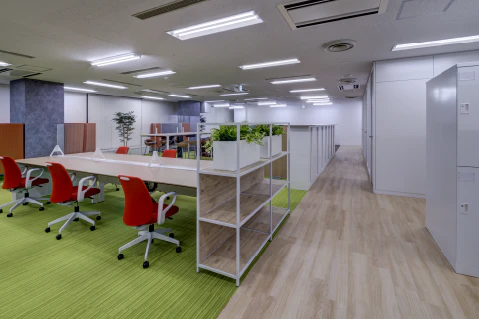 →業務をするためのスペース。デスクやキャビネットなどがレイアウトされる、オフィスの基本となるスペースです。