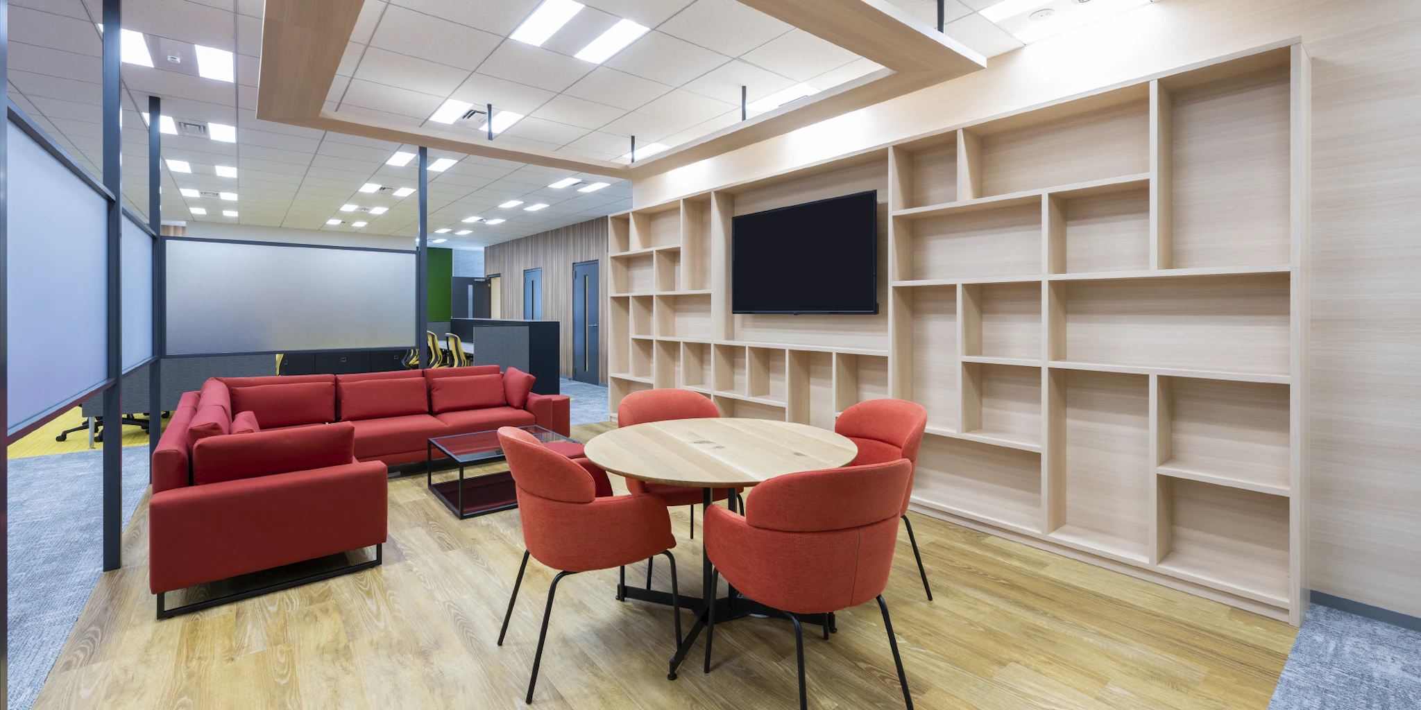 そこで、パーテーションの無い共有スペースを設置したり、パーテーションの高さを低くしたり(1,200mmが目安のローパーテーションを使用する)といった対策が効果的です。