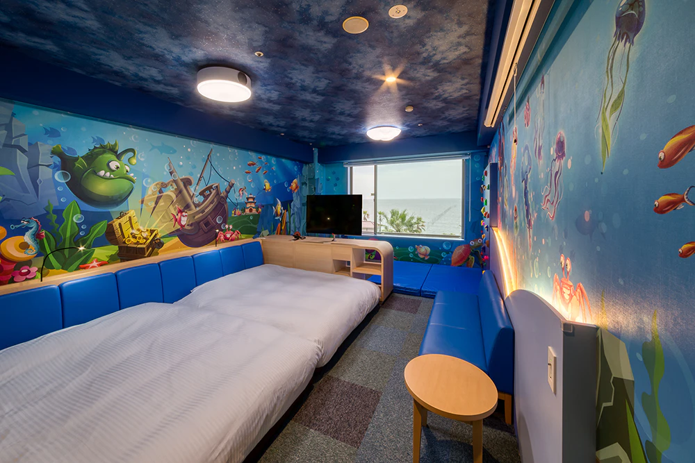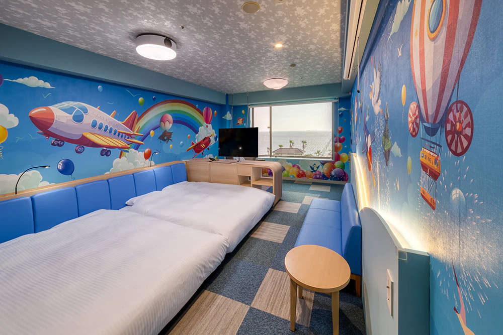 龍宮城スパ・ホテル三日月「龍宮亭」は、千葉県木更津市に位置するリゾートホテルです。2023年7月に、家族連れをメインターゲットとした客室のリニューアルを実施しました。老朽化した客室をファミリー向けのキッズルームへと改装することで、家族旅行の思い出作りはもちろん、ファン層の拡大を目指しました。