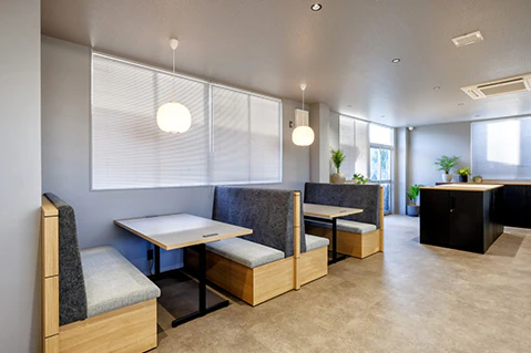 「2.5th place」をコンセプトに、業務効率と快適性を両立させた本社屋改修事例です。オフィス(2nd place)に心地よさ(0.5th place)を加えることで、現場作業の疲れを癒せる空間を目指しました。