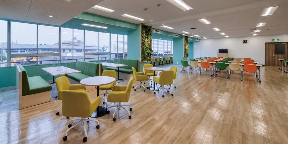 ⑤多目的に活用できるオフィス内食堂 | 日本地工株式会社様