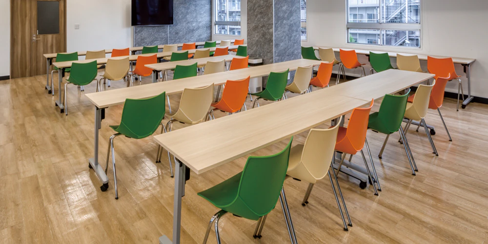 | 会議室 | コミュニケーションを活発にする明るい色や アクセントカラーを採用 |
