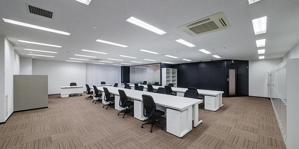 | ロビー | 企業のイメージを強く打ち出すデザインに | 明るく広々とした印象を与えるため 高輝度の照明を組み合わせる |