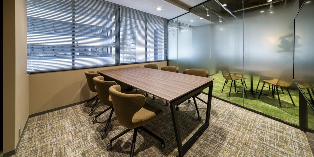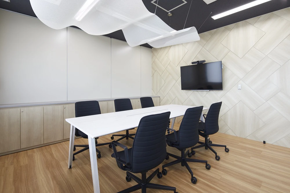 - ・会議室はダウンライトや木目の壁で暖かさをプラス