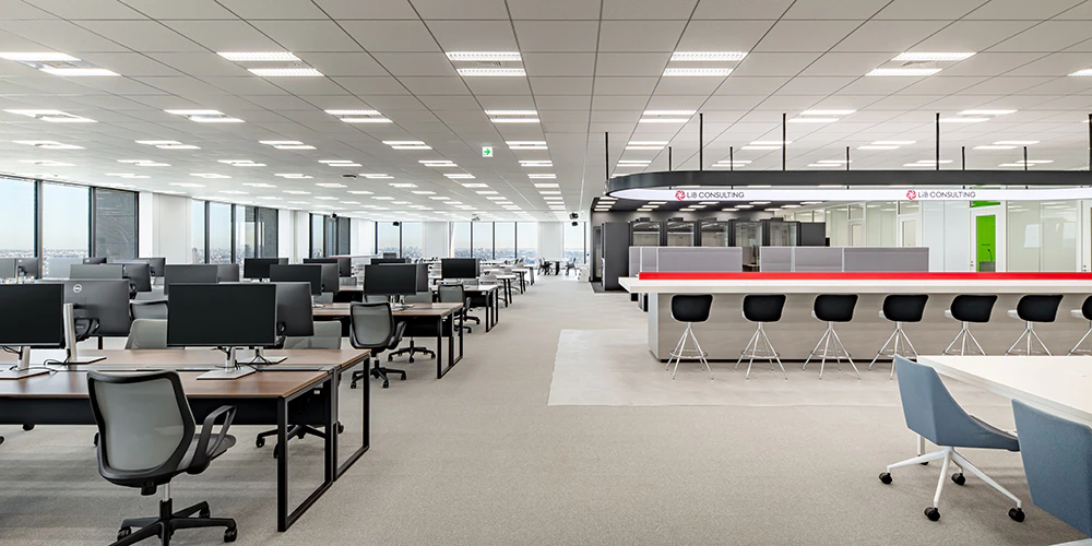 大企業から中堅・スタートアップ企業まで、さまざまな業界における経営コンサルティング、DX支援、業務改革を手掛ける株式会社リブ・コンサルティング様では、企業の成長に合わせて2024年11月にオフィスを移転・拡張し、そのデザイン・設計・施工をTOPPANが担当しました。今後の会社の成長にも対応する可変的な空間づくりが求められました。