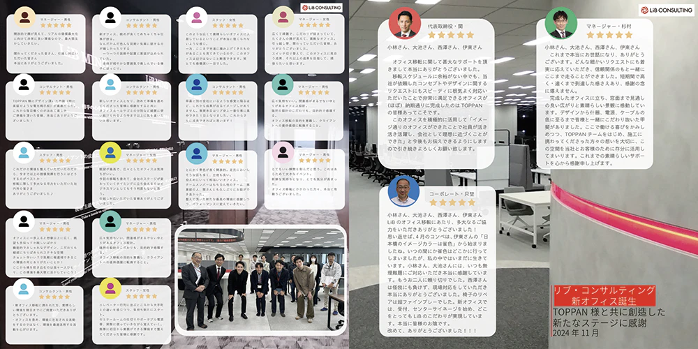 リブ・コンサルティング様よりTOPPANに授与された感謝状 ~働く社員様からも新しいオフィスに対して良い感想を得ている
