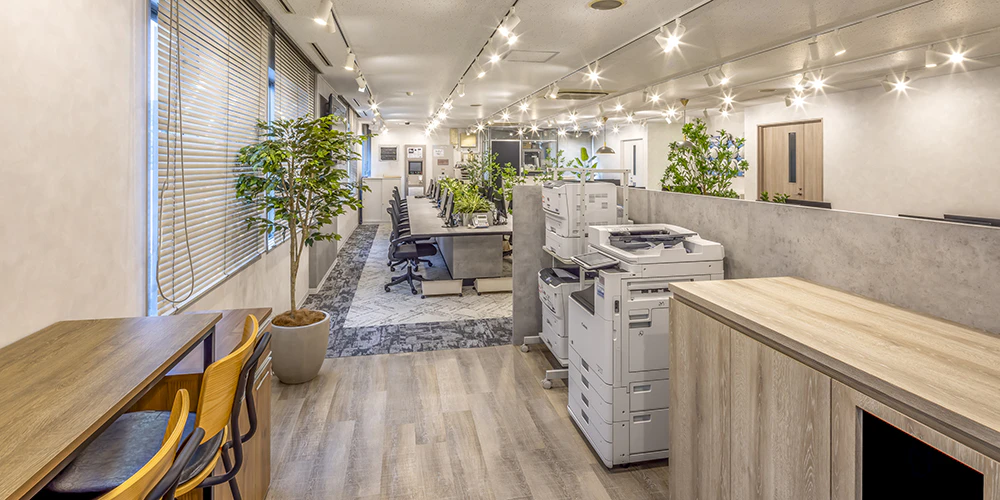 一方で、集中エリアには仕切りを設けてダウンライトを採用することで、メリハリのある働き方を可能にしています。この対照的な空間構成により、業務内容に応じた最適な環境を選択できる点が、オフィスワーカーの満足度向上につながっています。
