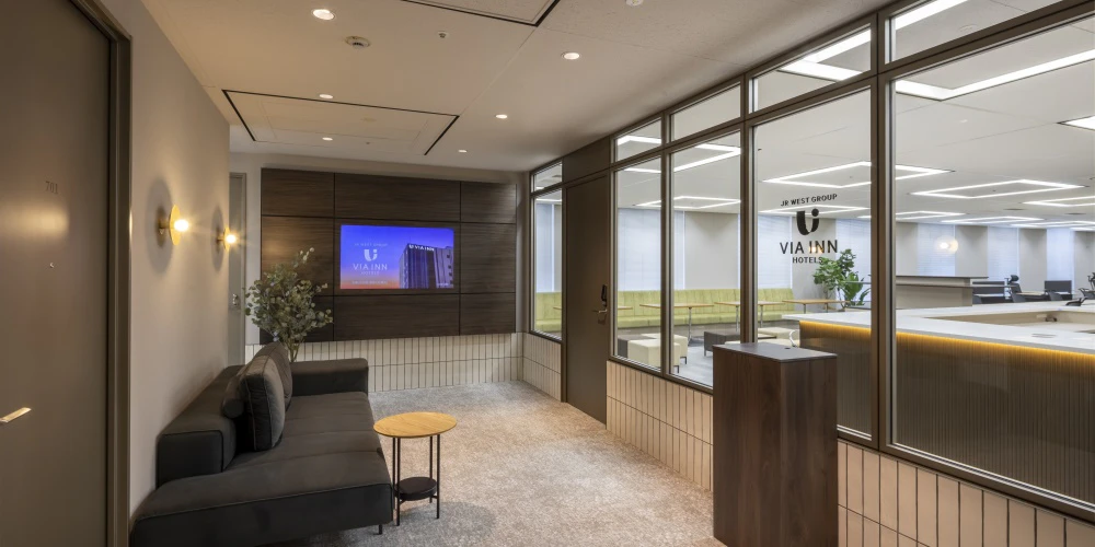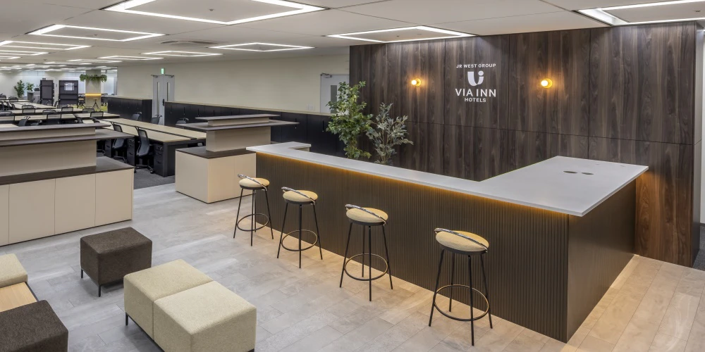 株式会社JR西日本ヴィアイン様は、本社移転にあたり「部署を超えたコミュニケーション促進」と「ブランドの魅力を体感できる空間づくり」をテーマに新オフィスを設計しました。ホテル事業で掲げる「MY HOME HOTEL.」の思想をオフィスに取り入れ、「OUR HOME OFFICE.」という独自コンセプトを実現しています。