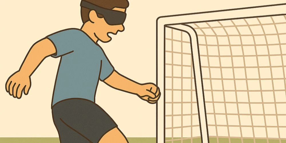 - 2. 参加者はアイマスクを装着し、視覚を制限した状態でサッカーを行う