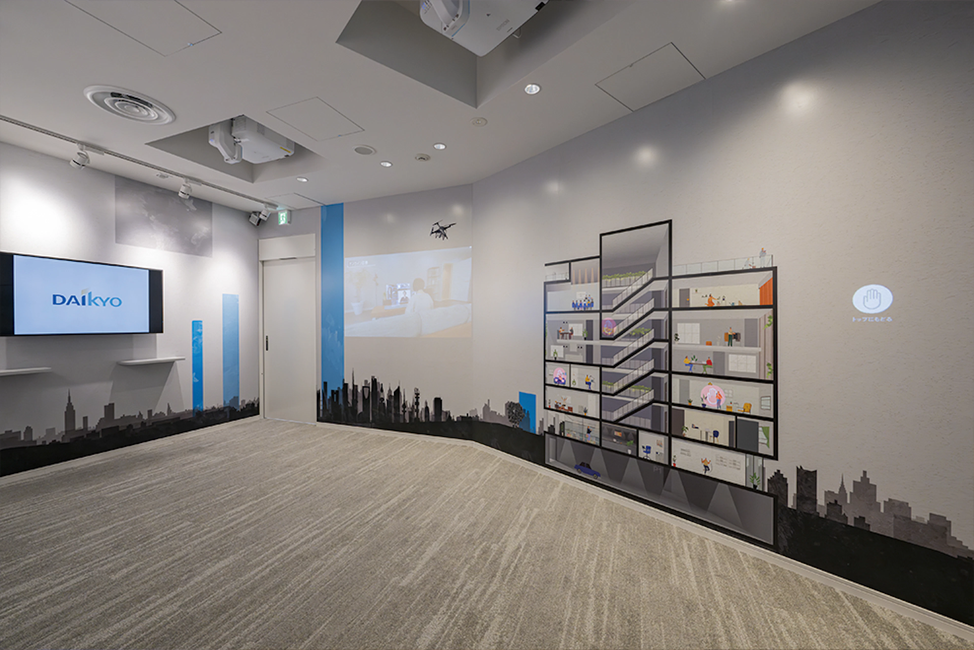 また、サービスや取り組みを解説するタッチウォールには手をかざすとポップアップやアニメーションが投影されるなど、体験型の要素を取り入れることで、魅力的な空間を創出しています。
