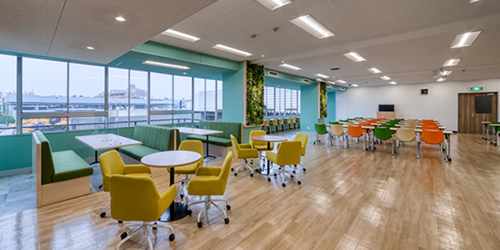 また、個人利用とグループ利用の両方に対応できる多様な席を設置し、食事だけでなく打ち合わせやリフレッシュにも活用できる多目的コミュニケーションエリアとして機能。働き方改革の観点からも、従業員のウェルビーイング向上に貢献しています。