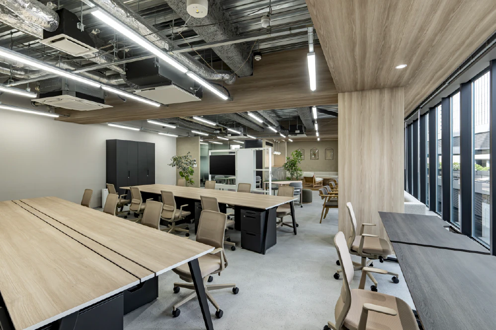 まず、洗練された空間デザインと機能性を両立させた10社のオフィス事例をご紹介します。各事例では、企業のブランドイメージを体現する洗練されたデザイン、業務効率を高める機能的なレイアウト、そして将来的な変化にも対応できる柔軟性のある空間構成に注目して解説していきます。