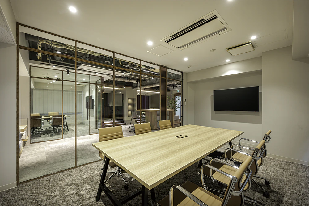 4階の専有部では、人の出入りや業務内容に応じたゾーニングを行い、カジュアルな打ち合わせスペースから集中デスクワークエリアまで、多様な働き方に対応できる環境を整備しています。
