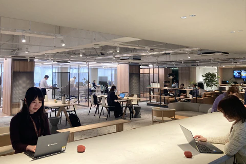TOPPAN 環境デザイン事業部の秋葉原事業所「expace office」では、部門を超えた社内コミュニケーションを促進するべく、フリーアドレス制を導入しています。