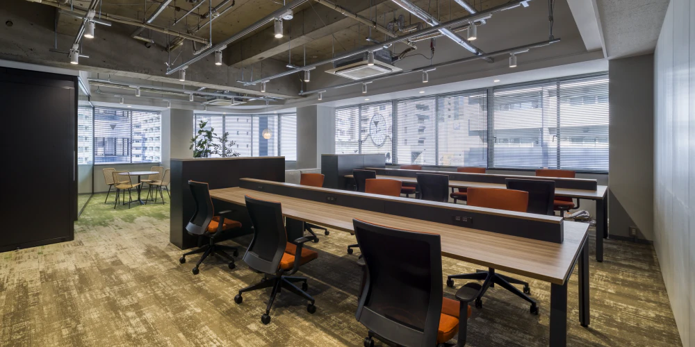 オフィスの移転事例です。温かみのある素材をベースに、コーポレートカラーのオレンジと植栽のグリーンを差し色にすることで、働きやすさや居心地のよさを追求しました。「人と人のつながりを持てる温かいオフィス」をコンセプトに、シームレスにオフィス内を見渡すことのできる空間を目指しました。