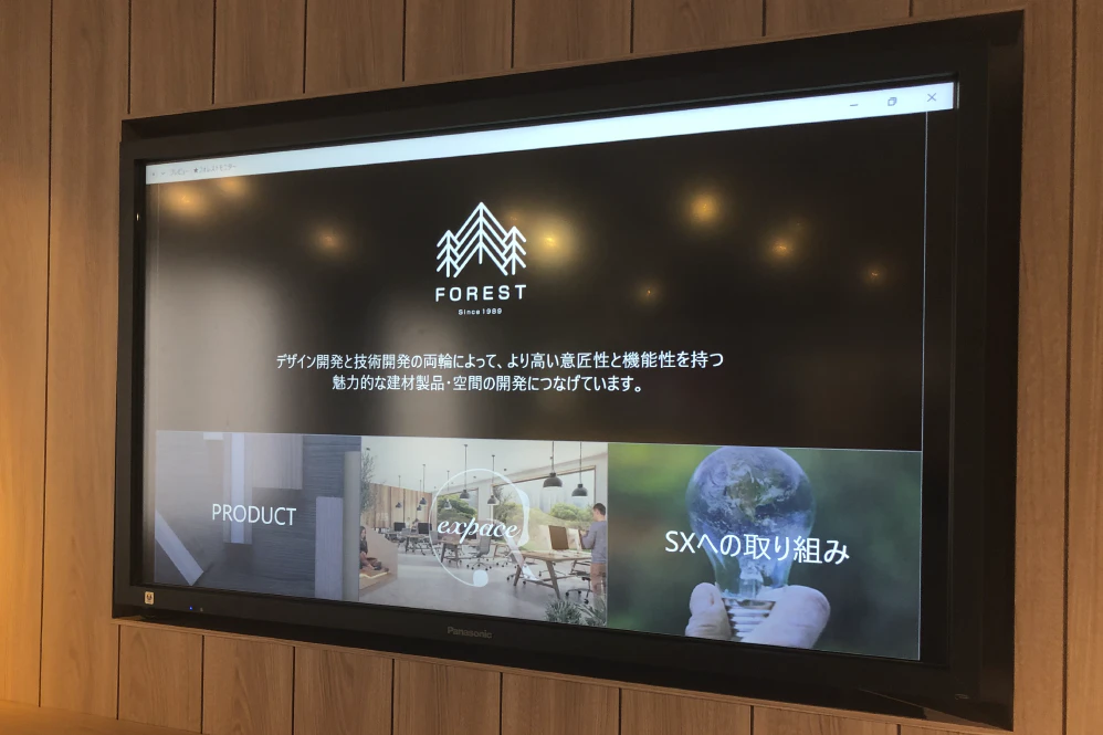 執務スペースに設置するのはもちろん、ペーパーレス化に欠かせない存在がディスプレイです。会議室やブースに設置することで、パソコンの画面だと文字が小さくて見えないから印刷する、などを抑制することができます。