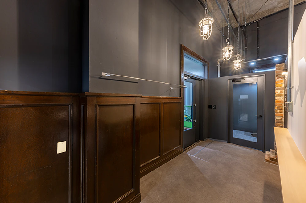 もっとも新しい拠点となる北海道のHAKODATEは、歴史的建造物である「旧大洋漁業函館営業所」を、外観はそのままにリノベーションしたオフィスです。函館市西部地区には、この建物のような和洋折衷の建築が多く残されています。そこでエントランスの内装にも、外壁に使われる下見板張りや型板ガラスなど当時の建築の特徴を活かしました。