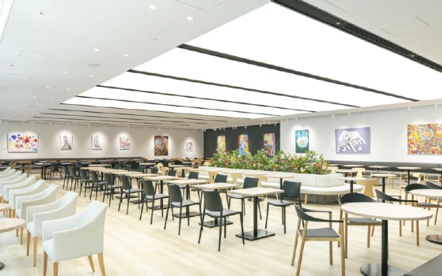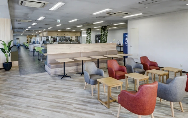 リニューアルされた食堂は、他の拠点の担当者からも「すごい!」と反響をいただいています。食堂と売店が一体化している点が特に驚かれたようです。食堂はランチだけでなく、休憩所としても利用されており、ランチ以外の時間にも多くの従業員が活用しています。