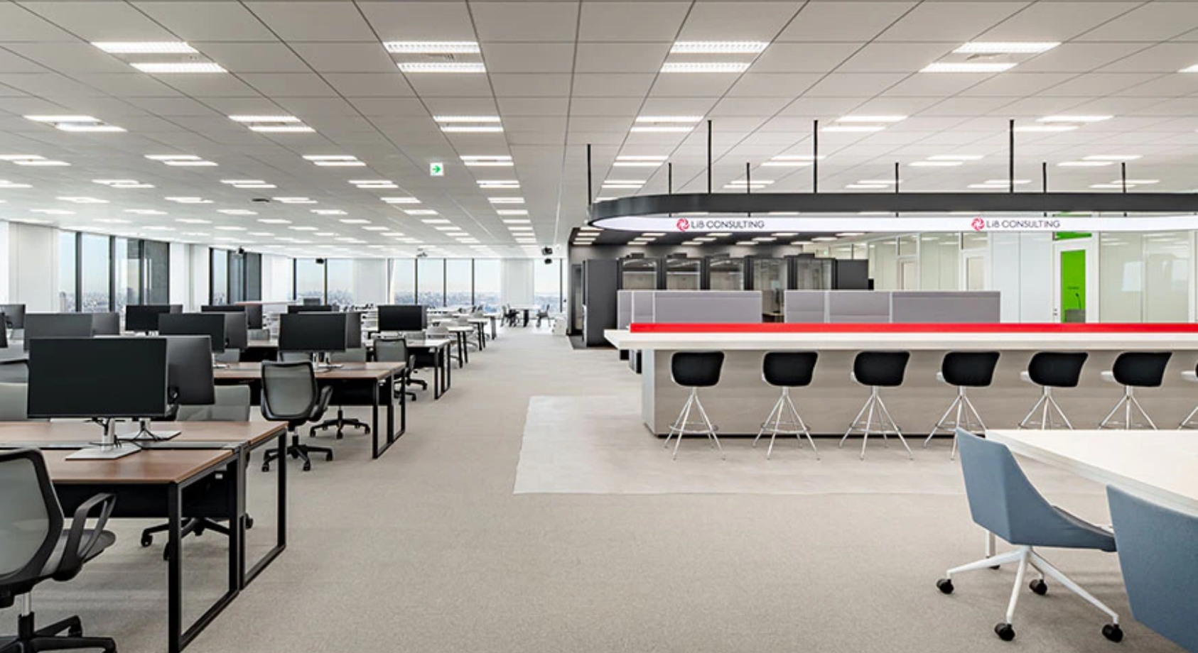 新オフィスのテーマは「生産性向上」と「リブ・コンサルティングらしさの体現」。私たちの業務では対面コミュニケーションが重要なため、スピード感が求められる現場でも連携しやすいよう、プロジェクト前から対面で交流できる環境を整えました。
