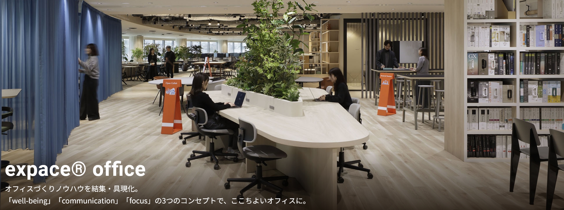 expaceは、先進的なオフィスづくりを評価する『日経ニューオフィス賞』や、日本唯一の総合的なデザイン評価・推奨のしくみである『グッドデザイン賞』を受賞。私たちは、機能性だけでなく先進的で美しい空間づくりを実現し、社会の変化、ユーザーのニーズを捉えた、そこにしかない空間の価値をお客様とともに生み出します。