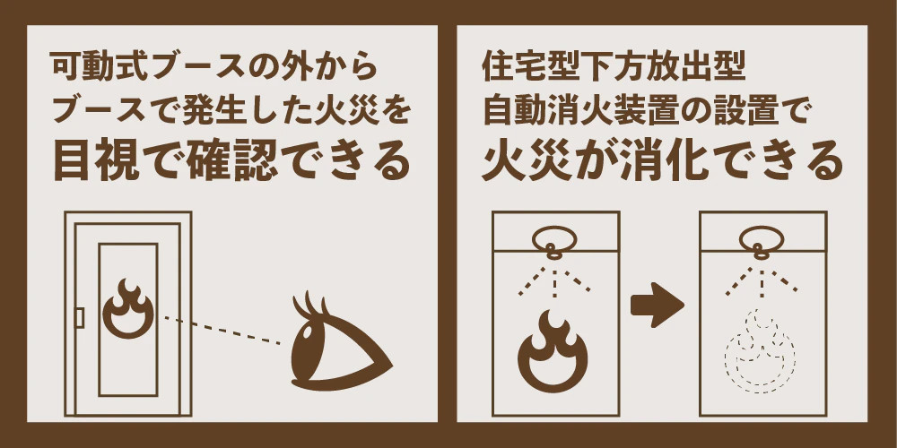 *可動式ブース:壁や天井に覆われており、防火対象物の床や壁に固定されていない、人が出入りできる設備のこと。
