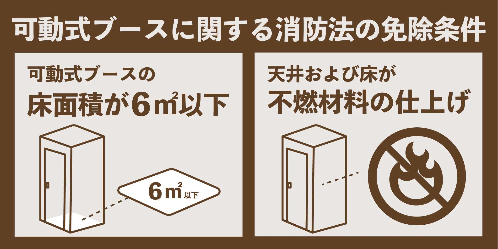 この「可動式ブース」では、スプリンクラーや感知器など、火災の被害を最小限に押さえるための設備の設置が義務付けられているのですが、下記条件を満たす場合は設置が免除されます。