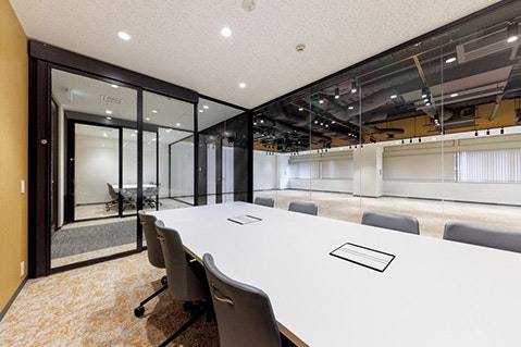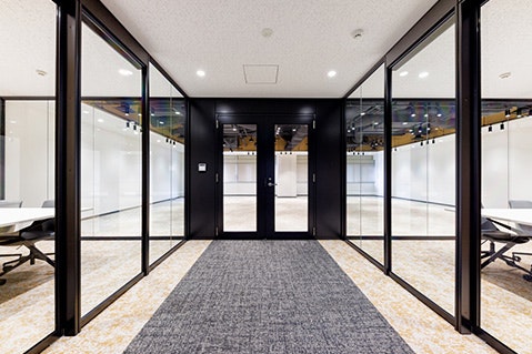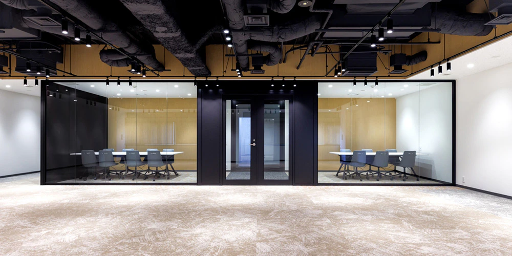 B室。こちらもガラス張りのミーティングルームを置き、解放感のある印象に。