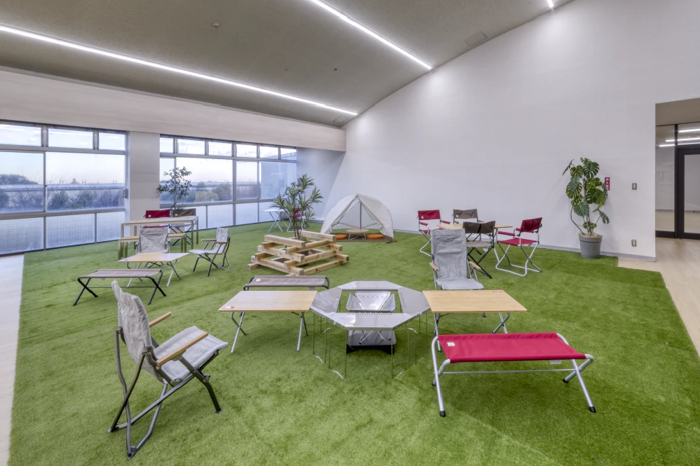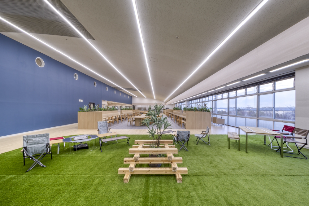 「SUBARU 手ぶらCAMP by Snow Peak」に着想を得て、食堂内にまるで屋外のようなガーデンエリアを新設しました。
